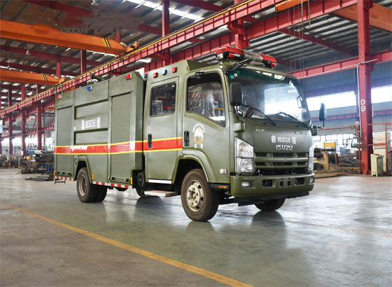 電氣配置 | 駕駛室頂部前端為長排**燈,車身后配有24V60W火場照明燈一只,車輛兩側上方各配有紅藍相配的爆閃燈,下方安裝安全標志燈,乘員室、器材箱、泵房內均裝有照明燈,加裝有100W**報燈,加轉**燈開關,通訊設備預留接口。 | ||
